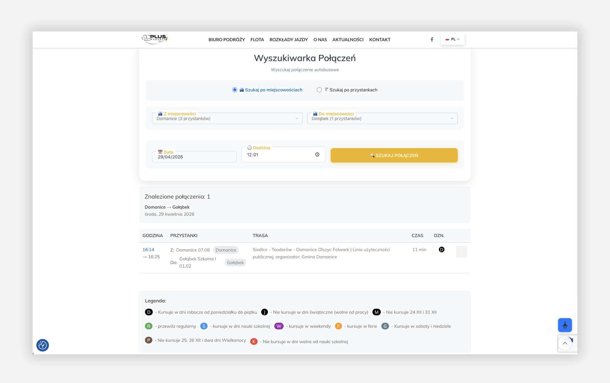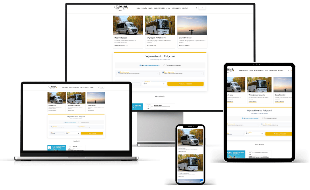 W branży transportu pasażerskiego kluczem do sukcesu jest czas i błyskawiczny dostęp do precyzyjnych informacji. Przestarzała witryna Plusbusy.pl generowała bariery komunikacyjne, co obciążało biuro obsługi i utrudniało pasażerom szybkie zaplanowanie podróży. Strategia Semidea polegała na kompleksowej modernizacji serwisu i odejściu od nieefektywnych rozwiązań na rzecz intuicyjnej platformy zorientowanej na użyteczność. Sercem nowej witryny stał się zaawansowany rozkład jazdy, który automatyzuje obsługę zapytań i buduje wizerunek niezawodnego, nowoczesnego przewoźnika.