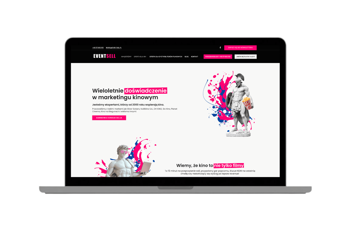 As the Semidea group, through the Eventsell brand, we offer dedicated websites for cinemas, theaters and cultural centers. These are not ordinary sites – they are advanced platforms integrated with ticketing systems, repertoire, and refund forms. We are creating an ecosystem in which cinema marketing sometimes costs as much as one ticket for a screening.